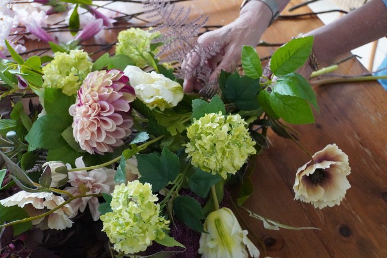 "Zijden bloemen zijn helemaal booming en bijna niet van echt te onderscheiden, wat het ook weer zo mooi maakt."